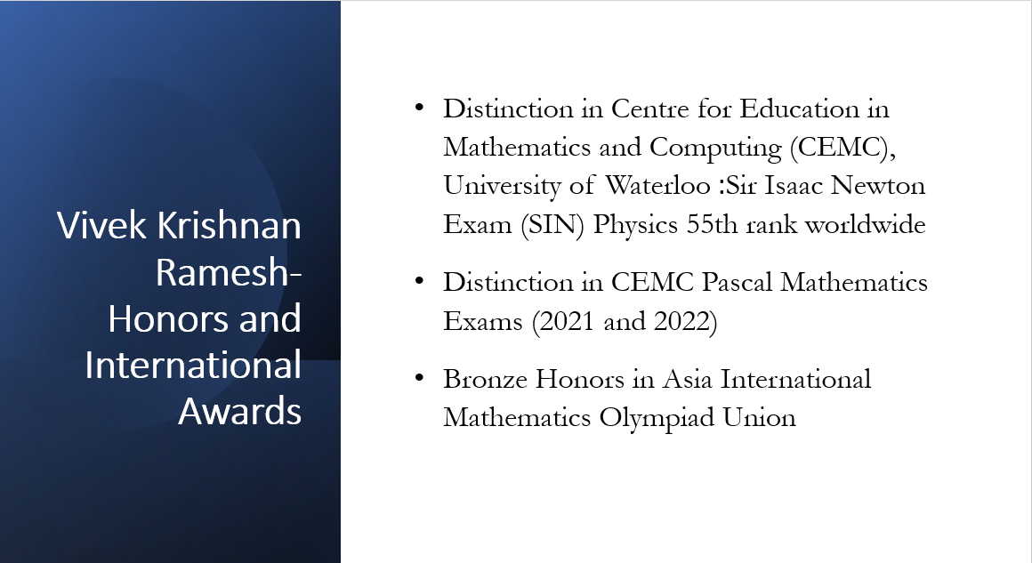 Back to Home INTERNATIONAL HONORS AND AWARDS Honors and awards especially at the international level have humbled me and motivated me to do my very best at various competitions